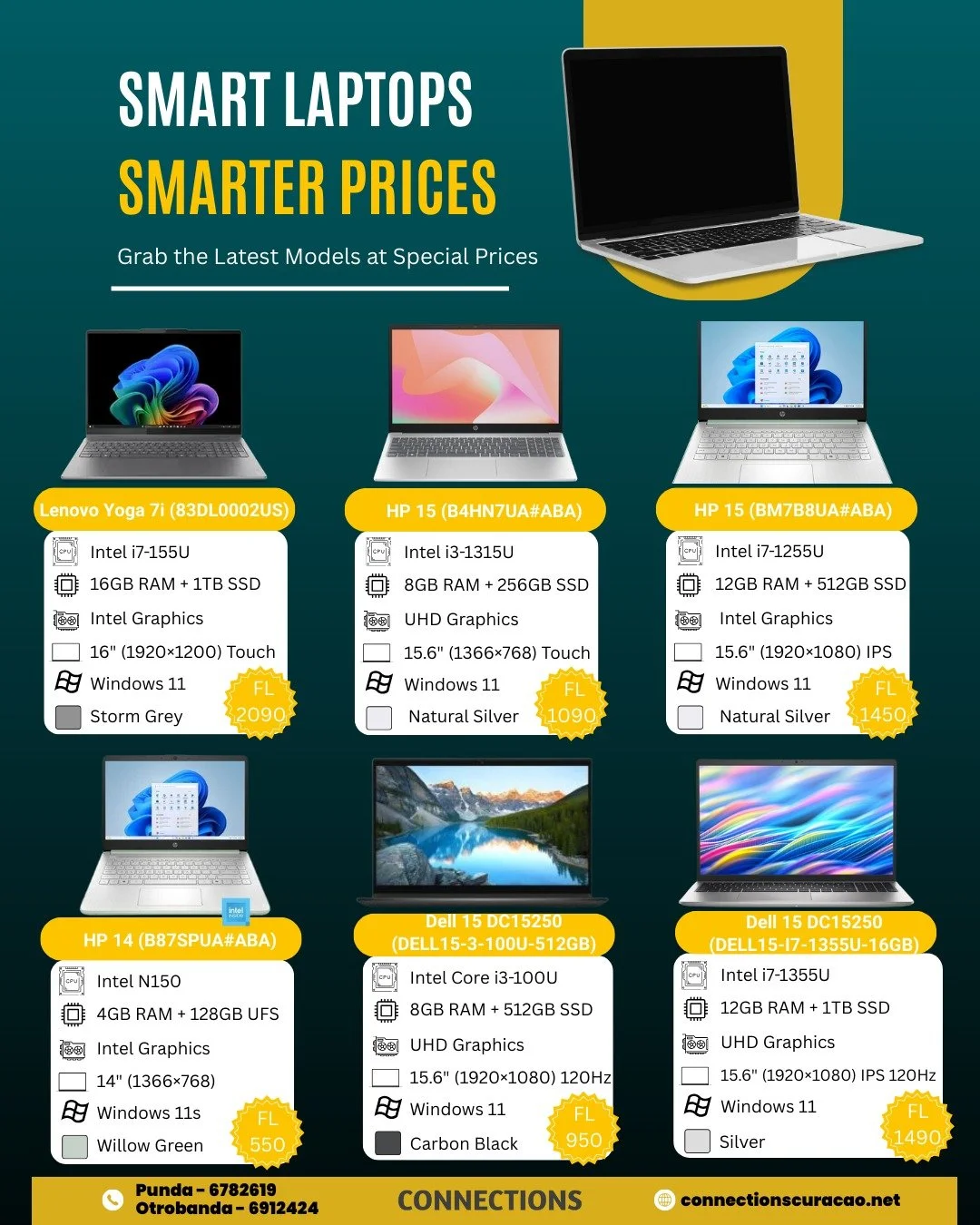 Phones, laptops, tablets, and instant gift cards. Pay in XCG via Sentoo. Same‑day pickup or digital delivery to WhatsApp.